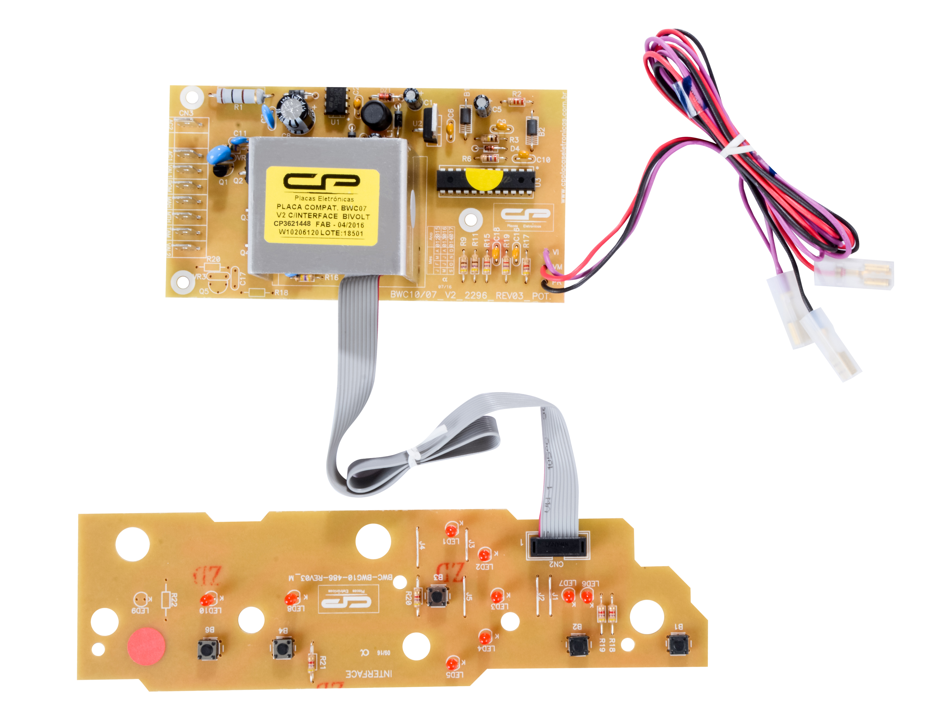 CP Placas Eletrônicas - CP 3621448 - Placa controladora digital de processo compatível lavadora BWC07/08 AB V2 com interface bivolt ATENÇÃO ESSE MODELO FOI DESCONTINUADO, AGORA O MODELO COMPATÍVEL É O 3621512