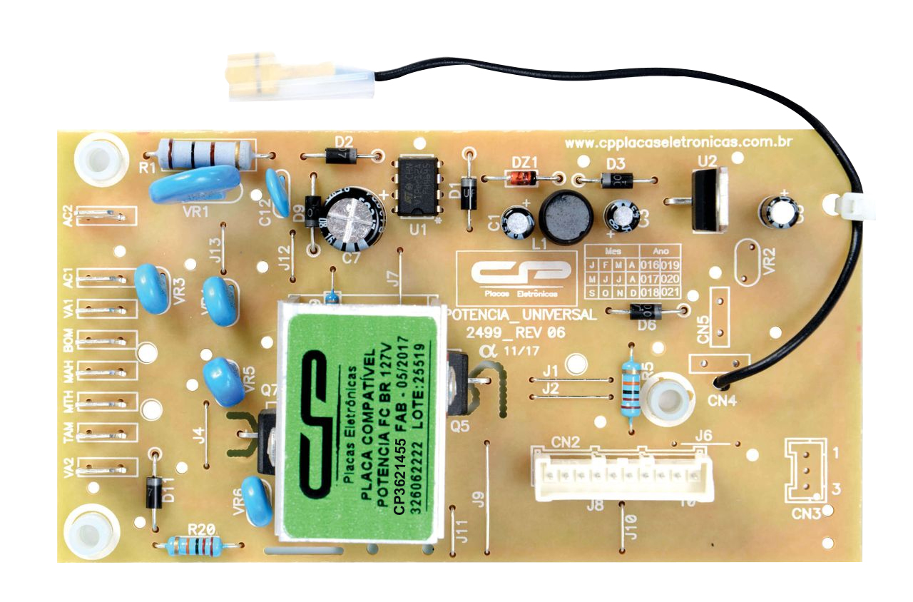 A função da placa de potência é abastecer a energia e conceder comandos para os componentes da lava roupa após receber o comando da placa interface. A Placa de potência para lavadora de roupas controla o ciclo de lavagem, parada e acionamento das demais funções, garantindo máxima eficiência e durabilidade.