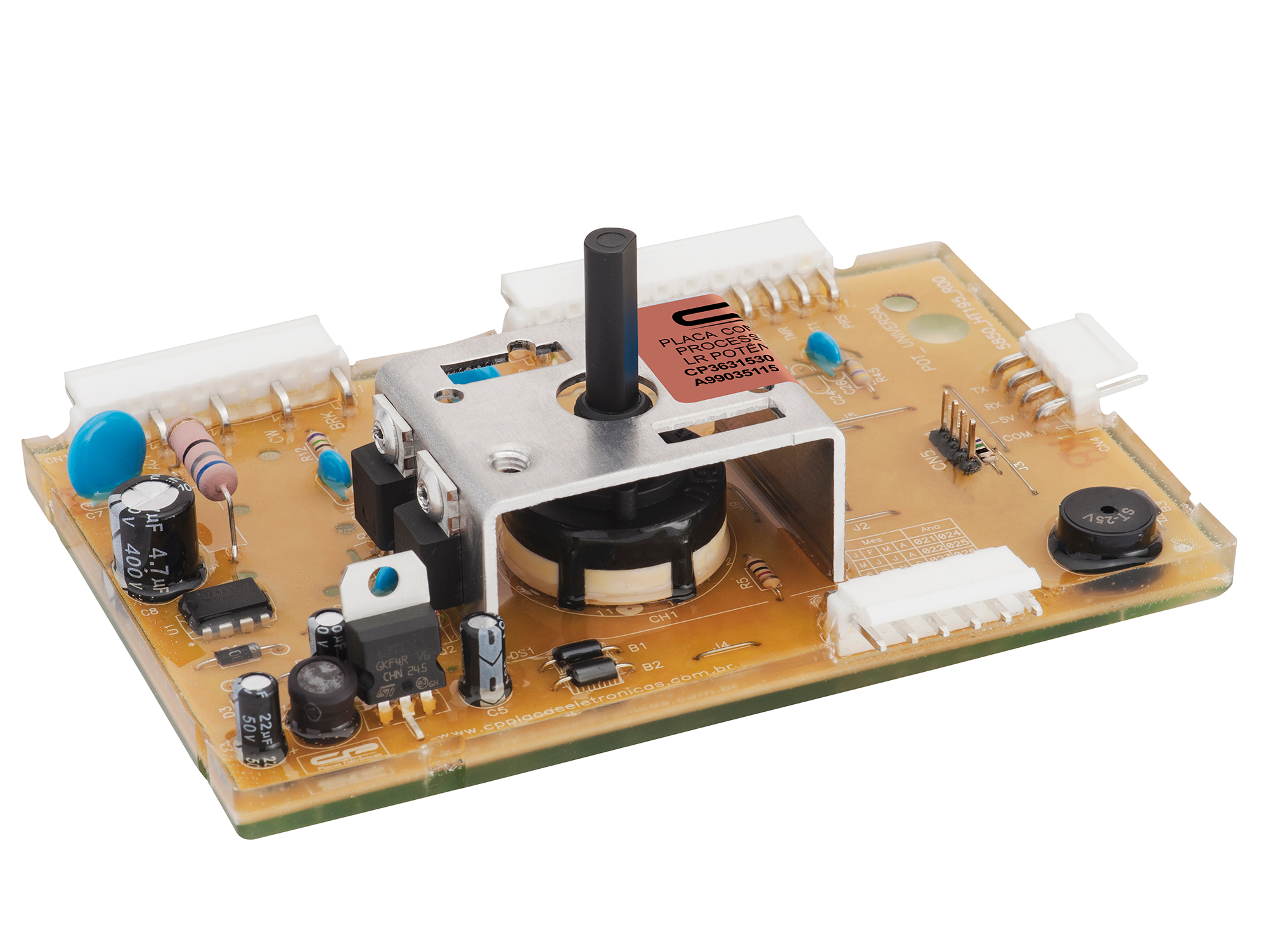 A função da placa de potência é abastecer a energia e conceder comandos para os componentes da lava roupa após receber o comando da placa interface. A Placa de potência para lavadora de roupas controla o ciclo de lavagem, parada e acionamento das demais funções, garantindo máxima eficiência e durabilidade.