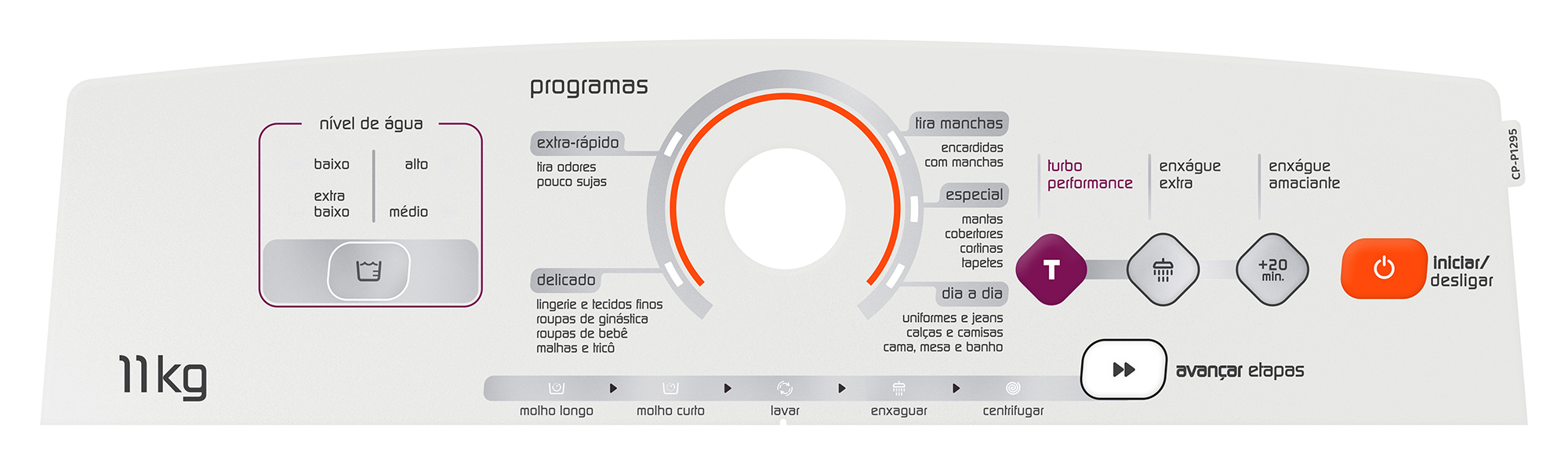 Painel decorativo para lava roupas oferece uma combinação única de funcionalidade e estética, fabricado em policarbonato para garantir segurança, resistência e proteção, além de permitir o acionamento perfeito dos botões na placa de interface.