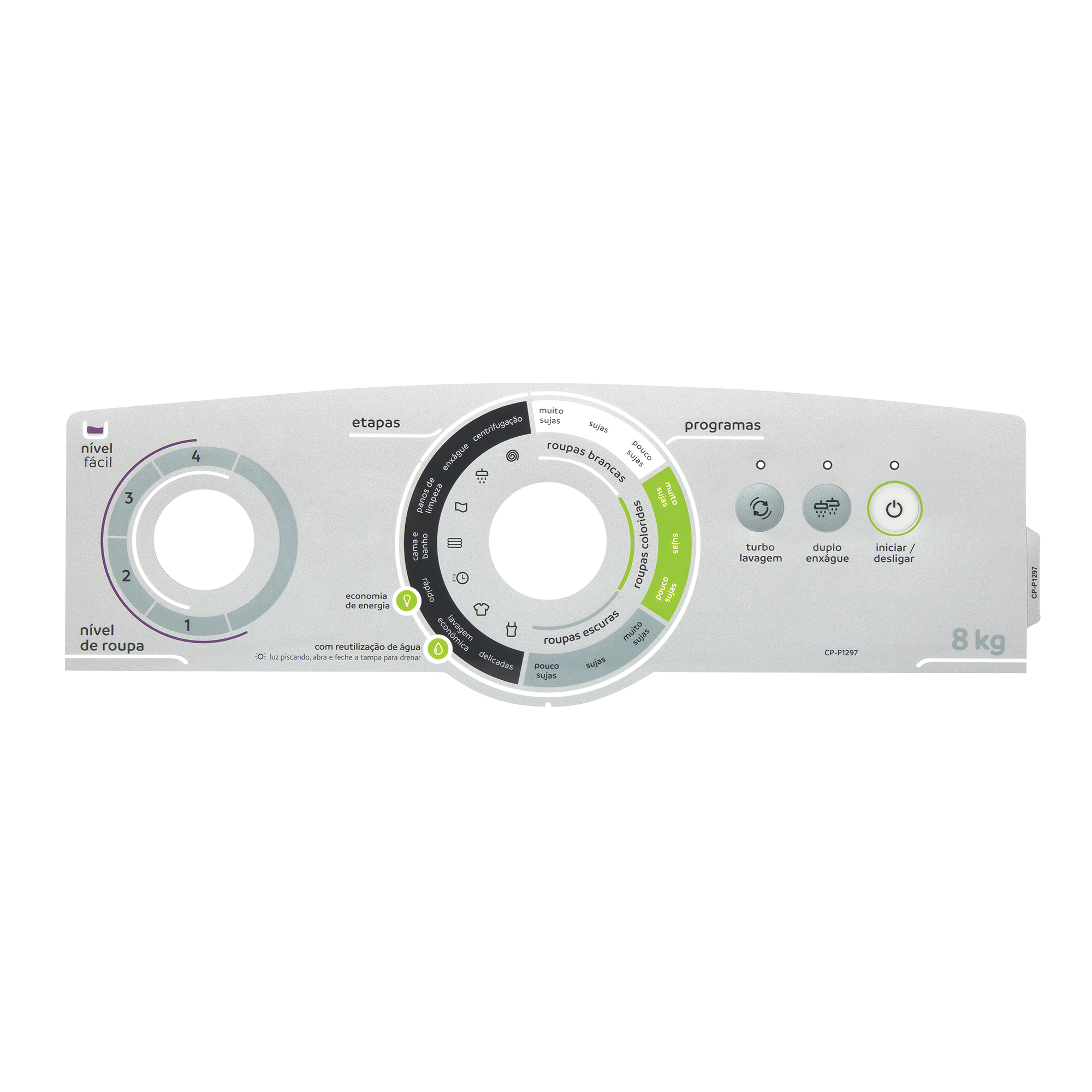 Painel decorativo para lava roupas oferece uma combinação única de funcionalidade e estética, fabricado em policarbonato para garantir segurança, resistência e proteção, além de permitir o acionamento perfeito dos botões na placa de interface.